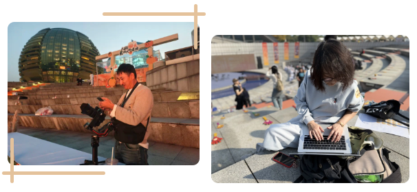 前期对接、排练策划、现场调度和新闻发稿的安排都有条不紊地进行。有人负责活动执行,忙前忙后,负责搬水、贴标签、分发餐食,记者摇身一变成了大管家;有人席地而坐,抱着电脑、手机就开始写稿;前方记者与后方编辑紧密配合,群内消息实时滚动更新着,每个人都各司其职。每个人都身兼数职。